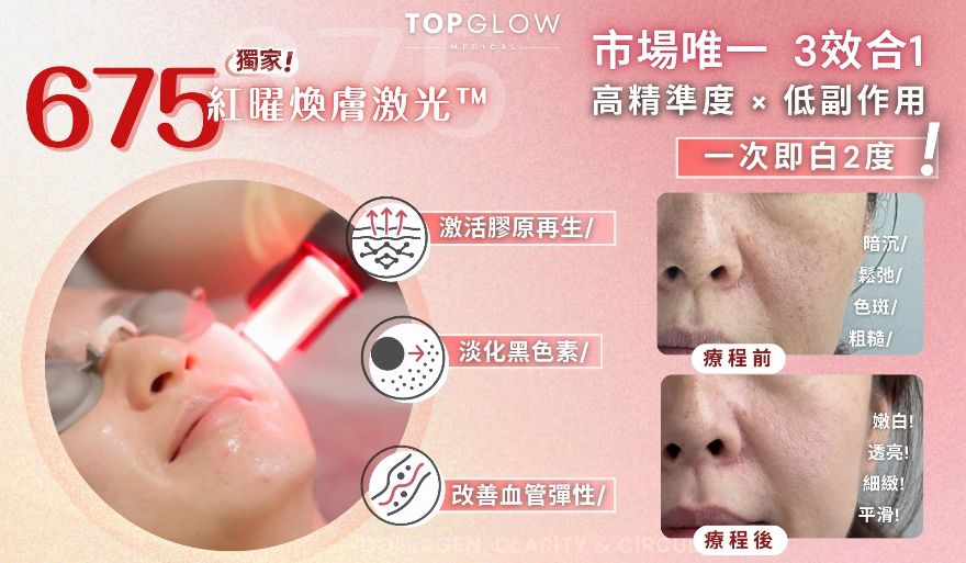 ▸ 立即預訂 TapNow x TopGlow Medical 【675 紅曜煥膚激光】, 告別細紋與暗啞,立即展開肌膚淨白之旅!